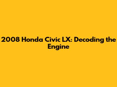 Hey guys! Ever wondered about the engine that makes your 2008 Honda Civic LX hum? Well, you're in the right place. We're diving deep into the heart of this iconic car, uncovering its engine's name, specs, and performance. Getting to know your engine is super important, whether you're a seasoned car enthusiast or just someone who wants to keep their ride running smoothly. Let's get started and unravel the mystery of the 2008 Honda Civic LX engine!