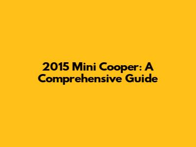 2015 Mini Cooper: A Comprehensive Guide