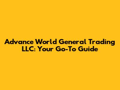 Advance World General Trading LLC: Your Go-To Guide