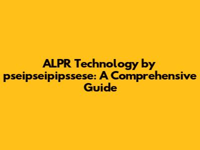 ALPR Technology By Pseipseipipssese: A Comprehensive Guide