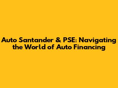 Hey there, car enthusiasts and finance gurus! Let's dive into the fascinating world of Auto Santander and its connection with PSE (Pagos Seguros En LĂ­nea), specifically focusing on how they relate to the auto financing scene. This guide is crafted to break down the complexities, making it super easy to understand and navigate. Whether you're a seasoned borrower or just starting to explore auto loans, we've got you covered. We'll explore everything from understanding what Auto Santander is to how PSE plays a crucial role in secure online payments. Plus, we'll sprinkle in some tips and tricks to help you make informed decisions. So, buckle up, because we're about to hit the road to financial literacy! This journey promises to be informative, engaging, and, dare we say, fun. Ready to learn how Auto Santander and PSE are revolutionizing the way we finance our dream cars? Let's get started!