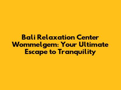 Hey guys! Are you looking for a little slice of paradise right here in Wommelgem? Well, look no further! Let's dive into the serene world of the Bali Relaxation Center, your go-to destination for unwinding and rejuvenating your mind, body, and soul. This isn't just another spa; it's a holistic experience designed to transport you to the tranquil shores of Bali without ever leaving Belgium.