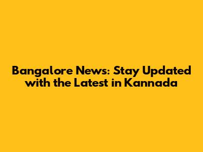 Bangalore News: Latest Updates In Kannada
