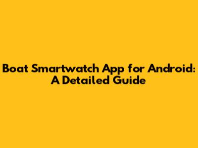 Boat Smartwatch App For Android: A Detailed Guide