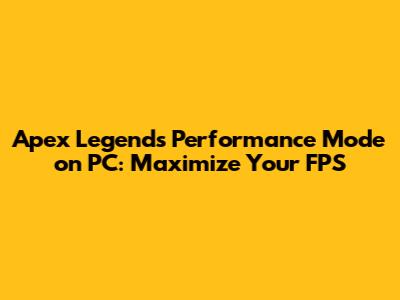 Boost Apex Legends FPS: Performance Mode On PC