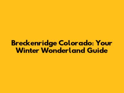 Breckenridge Colorado: Your Winter Wonderland Guide