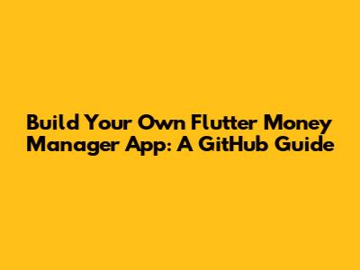 Build Your Own Flutter Money Manager App: A GitHub Guide