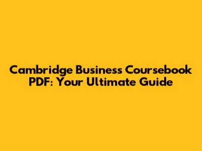 Cambridge Business Coursebook PDF: Your Comprehensive Guide