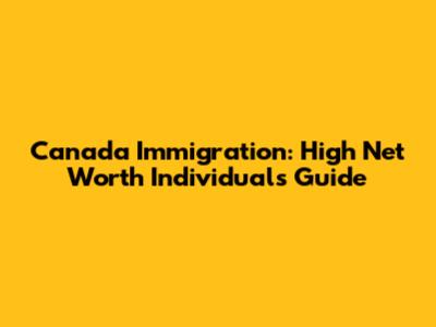 Canada Immigration: High Net Worth Individuals Guide