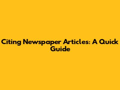 Citing Newspaper Articles: A Quick Guide