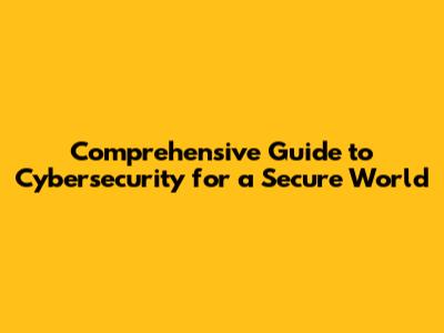 Comprehensive Guide To Cybersecurity For A Secure World