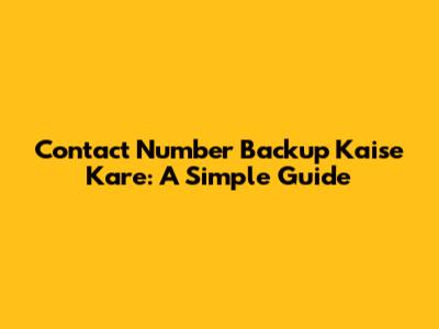 Contact Number Backup Kaise Kare: A Simple Guide