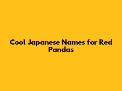 Cool Japanese Names For Red Pandas