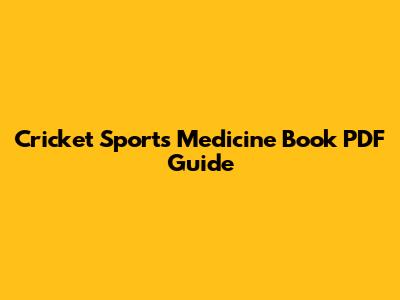 Cricket Sports Medicine Book PDF Guide