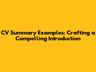 CV Summary Examples: Crafting A Compelling Introduction