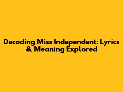 Decoding 'Miss Independent': Lyrics & Meaning Explored