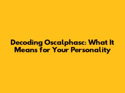 Decoding Oscalphasc: What It Means For Your Personality