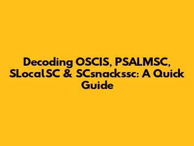 Hey guys! Ever stumbled upon acronyms like OSCIS, PSALMSC, SLocalSC, and SCsnackssc and felt like you're trying to decipher an alien language? Well, you're not alone! These abbreviations often pop up in specific contexts, and understanding what they stand for can be super helpful. Let's break them down one by one, shall we? Our main keyword here is decoding, so let’s dive into what each of these abbreviations means and where you might encounter them. This guide aims to clarify these terms, making your life a little bit easier. We'll explore each keyword in detail, providing context and examples to ensure you grasp their meanings fully. Think of this as your friendly neighborhood guide to navigating the world of acronyms. Let's get started and unlock the secrets behind these abbreviations, making sure you're well-equipped to understand them whenever they appear. Remember, understanding acronyms is like having a secret decoder ring – it helps you unlock hidden meanings and communicate more effectively. So, buckle up, and let's embark on this journey of decoding together! By the end of this guide, you'll be an expert in OSCIS, PSALMSC, SLocalSC, and SCsnackssc. This knowledge will not only impress your friends but also enhance your understanding of various fields where these acronyms are commonly used. Whether you're a student, a professional, or simply a curious individual, this guide is designed to provide you with the clarity you need. So, let's jump right in and start unraveling the mysteries behind these abbreviations!