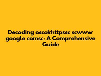 Decoding Oscokhttpssc Scwww Google Comsc: A Comprehensive Guide