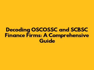 Demystifying OSCOSSC Finance Firms