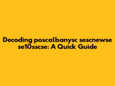 Decoding Poscalbanysc Sescnewse Se10sscse: A Quick Guide
