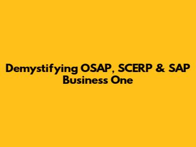 Demystifying OSAP, SCERP & SAP Business One