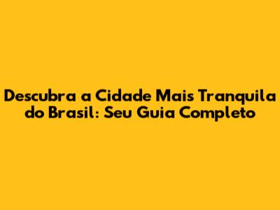 Descubra A Cidade Mais Tranquila Do Brasil: Seu Guia Completo