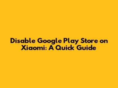 Disable Google Play Store On Xiaomi: A Quick Guide