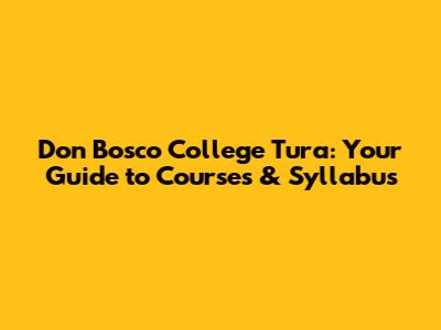 Decoding the Don Bosco College Tura Syllabus: What You Need to Know