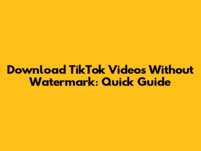 Download TikTok Videos Without Watermark: Quick Guide