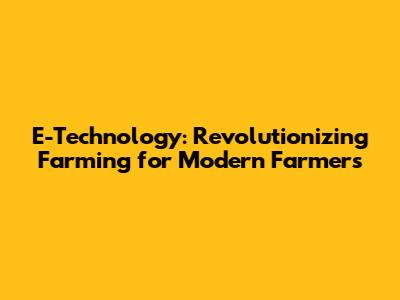 E-Technology: Revolutionizing Farming For Modern Farmers