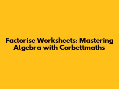 Factorise Worksheets: Master Algebra With Corbettmaths