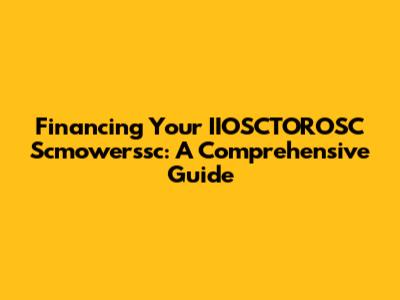Financing Your IIOSCTOROSC Scmowerssc: A Comprehensive Guide