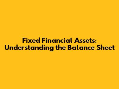 Fixed Financial Assets: Understanding The Balance Sheet