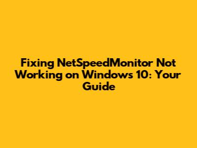 Fixing NetSpeedMonitor Not Working On Windows 10: A Quick Guide