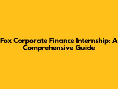 Fox Corporate Finance Internship: A Comprehensive Guide
