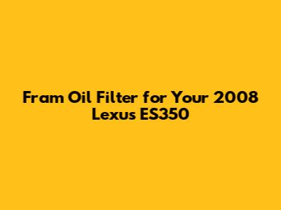 Hey guys! Today, we're diving deep into something super important for your ride: the oil filter, specifically the Fram oil filter for your 2008 Lexus ES350. Keeping your engine happy and healthy is paramount, and the oil filter plays a huge role in that. It's like the bodyguard for your engine's oil, catching all those nasty particles and gunk before they can cause damage. So, choosing the right one matters, and Fram is a name many of us trust. We'll break down why the Fram filter is a solid choice for your ES350, what makes it tick, and how to make sure you're getting the best performance out of it. We'll cover everything from compatibility to the nitty-gritty of its design, so by the end of this, you'll feel like a pro when it comes to your car's oil filtration needs. Let's get this engine purring!