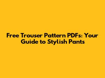 Free Trouser Pattern PDFs: Your Guide To Stylish Pants