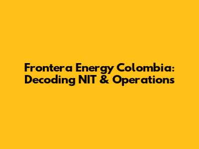 Frontera Energy Colombia: Decoding NIT & Operations