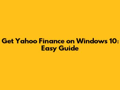 Get Yahoo Finance On Windows 10: Easy Guide