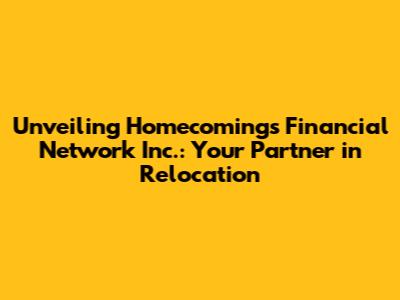 Unveiling Homecomings Financial Network Inc.: Your Partner in Relocation