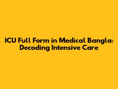 ICU Full Form In Medical Bangla: Decoding Intensive Care