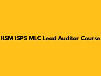 IISM ISPS MLC Lead Auditor Course: Become A Certified Auditor