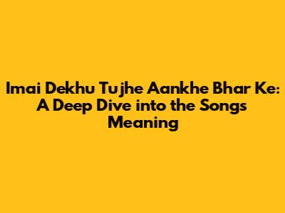 Hey guys! Have you ever listened to a song that just grabs you, you know? Like, the melody is beautiful, but the lyrics? They hit you right in the feels. That's how I feel about "Imai Dekhu Tujhe Aankhe Bhar Ke." It’s not just a song; it’s an experience. Let's break down what makes this song so special, exploring its lyrics, the emotions it evokes, and why it resonates with so many people. Trust me, once you understand the depth of this song, you'll appreciate it even more. So, let's dive in and explore every nook and cranny of this musical gem, uncovering its secrets and understanding why it continues to enchant listeners around the globe. Get ready to embark on a journey of musical discovery where we'll dissect the lyrics, analyze the composition, and delve into the cultural context that makes "Imai Dekhu Tujhe Aankhe Bhar Ke" a timeless masterpiece.