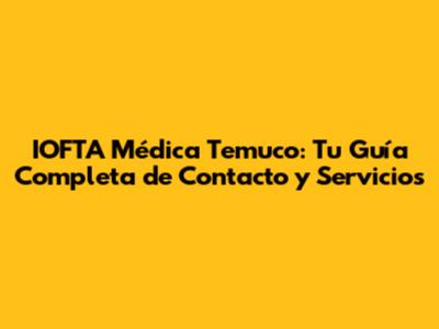 IOFTA Médica Temuco: Contacto, Fono Y Todo Lo Que Necesitas