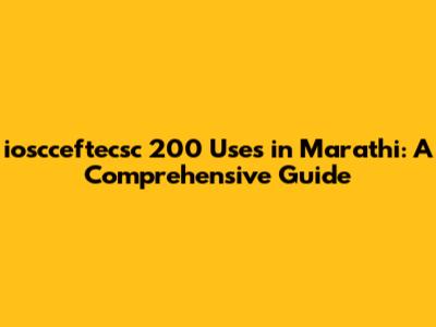 Ioscceftecsc 200 Uses In Marathi: A Comprehensive Guide