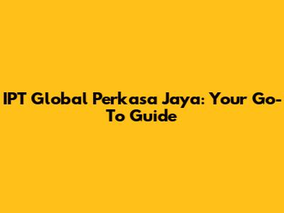 IPT Global Perkasa Jaya: Your Go-To Guide