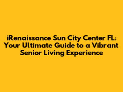 Hey there, future Sun City Center residents! Are you dreaming of a life filled with sunshine, social activities, and a welcoming community? Well, buckle up, because we're diving deep into the heart of iRenaissance Sun City Center, FL. This place is more than just a retirement community; it's a lifestyle. Located in the heart of Florida, Sun City Center offers a unique blend of active living and peaceful relaxation, making it a popular destination for those seeking the perfect chapter in their golden years. We'll explore everything you need to know about iRenaissance, from its location and amenities to its community vibe and lifestyle. So, grab a cup of coffee, settle in, and let's uncover what makes iRenaissance Sun City Center so special.