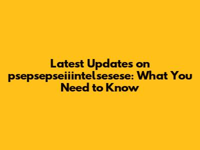 Latest Updates On Psepsepseiiintelsesese: What You Need To Know