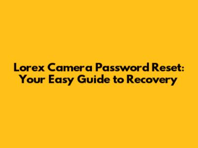 Lorex Camera Password Reset: A Simple Guide